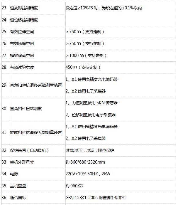 上述各項技術的綜合應用,保證了WDW-100JE微機控制腳手架扣件試驗機可以實現試驗力、試樣變形和橫梁位移等參量的閉環控制,可實現恒力、恒位移、恒應變、等速度載荷循環、等速度變形循環等試驗。